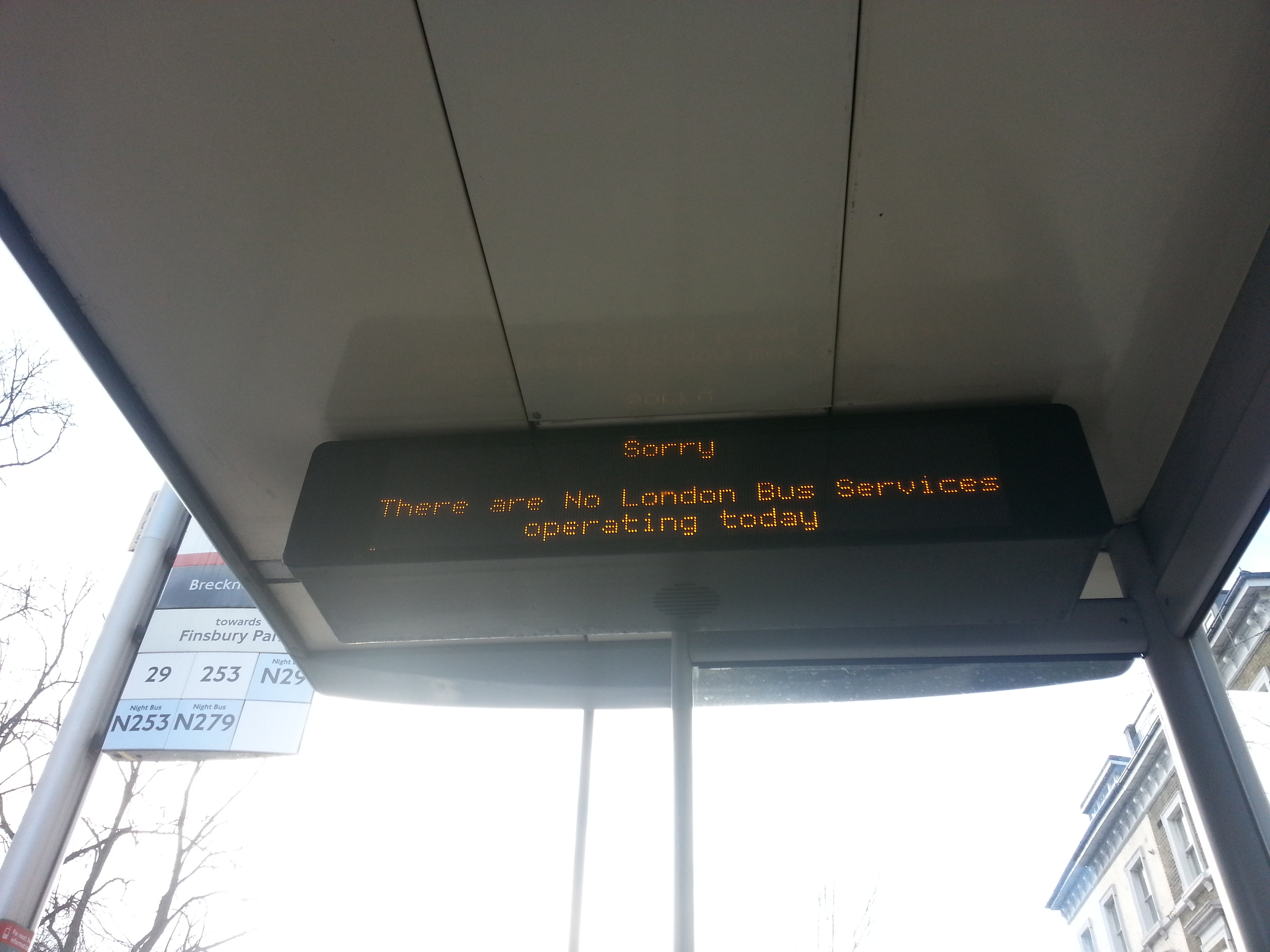 All of the tubes were shut and there were no bus services, so we were hoping that London would be totally empty 28 Days Later style. However, this was not the case. Instead, London was filled with cars travelling to family holiday gatherings and tourists wandering the streets with cameras. (After all, the sun was shining!)