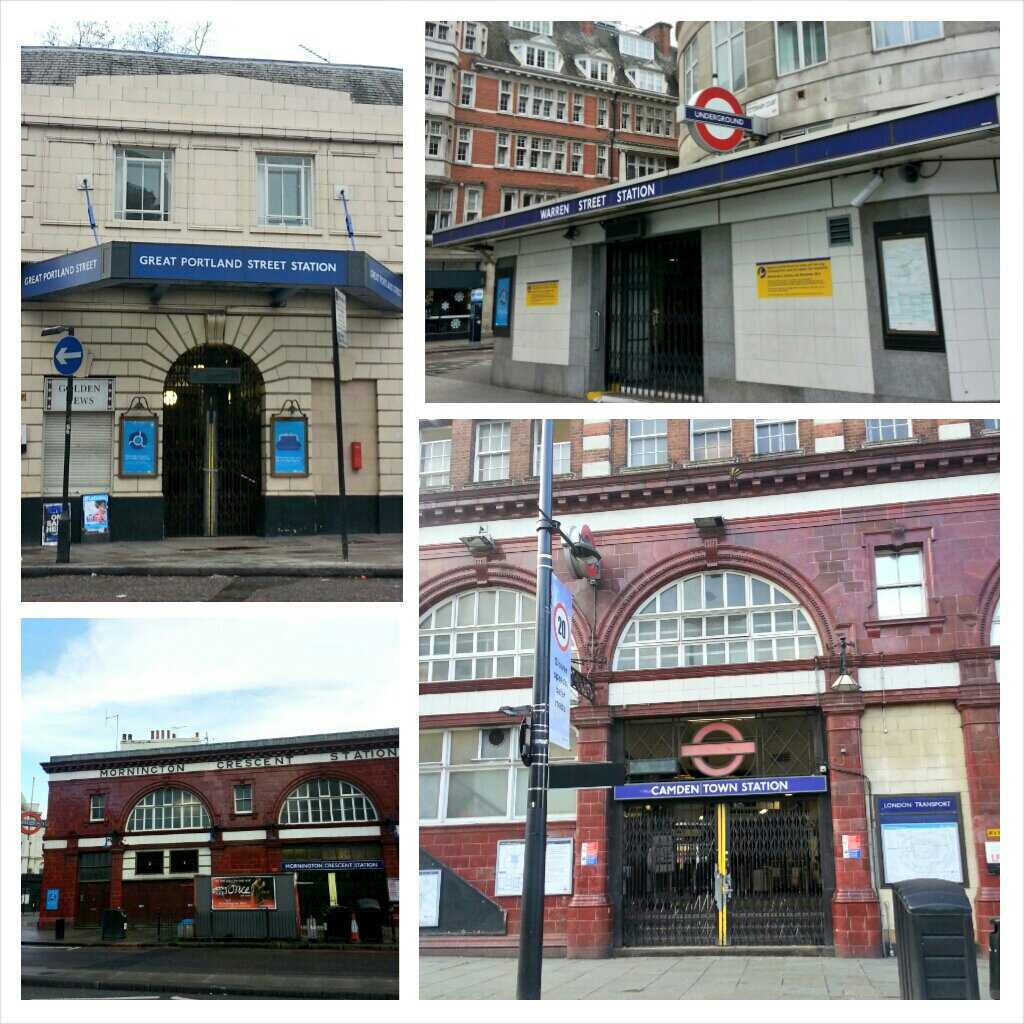 Camden Town to Mornington Crescent to Euston, over to Warren Street then Great Portland Street, to Oxford Circus and Tottenham Court Road; Holborn then Chancery Lane then Farringdon then Angel, up through Highbury and Islington and up to Holloway Road. Phew!