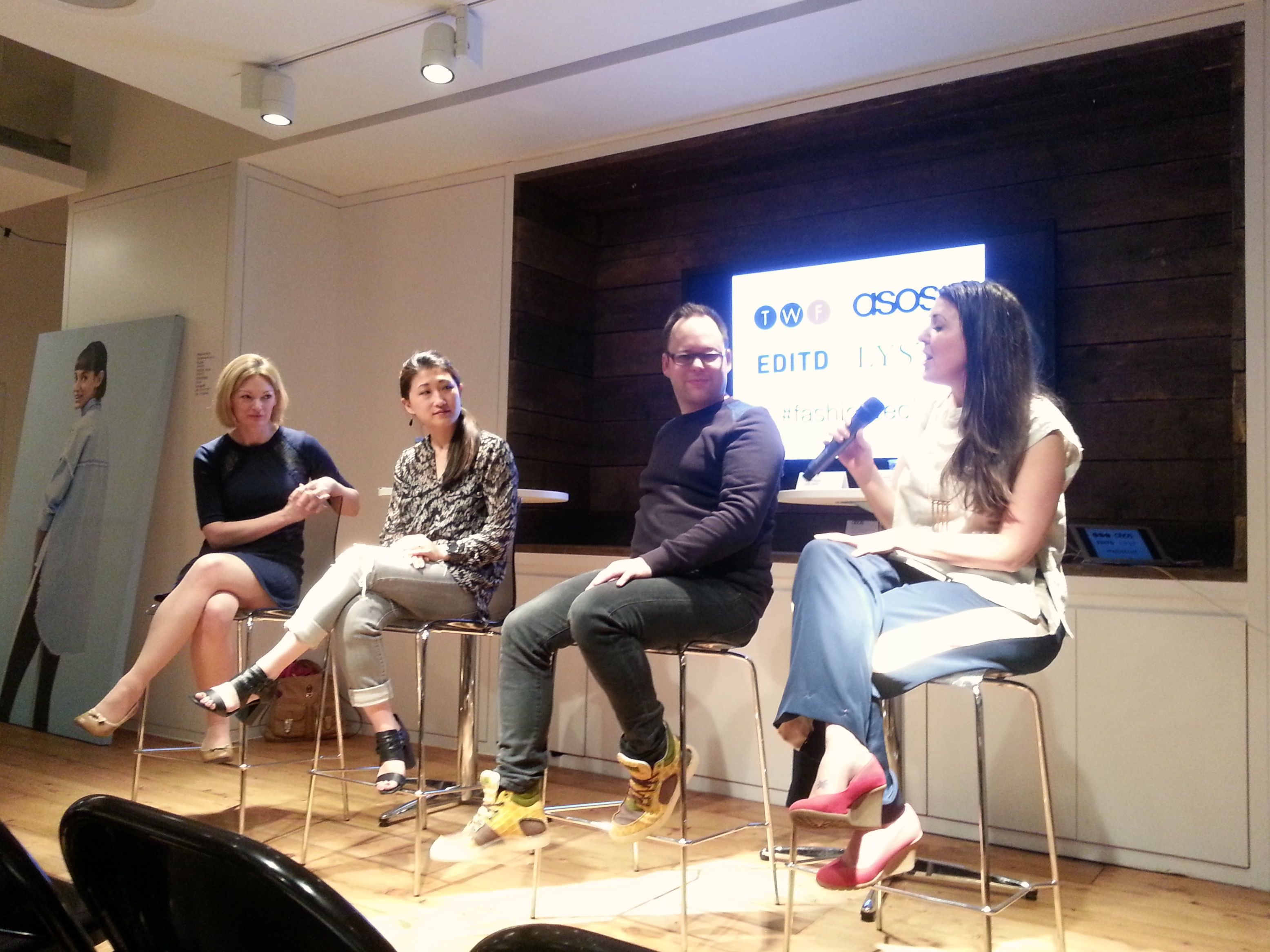 Then it was on to the panel with (from left to right) Marie Hamblin, Business Solution Owner/ Innovation, ASOS; Miyon Im, Head of Product, LYST; Geoff Watts, CEO, EDITD; and moderator Liza Kindred, Founder of Third Wave Fashion and author of The Future of Commerce.