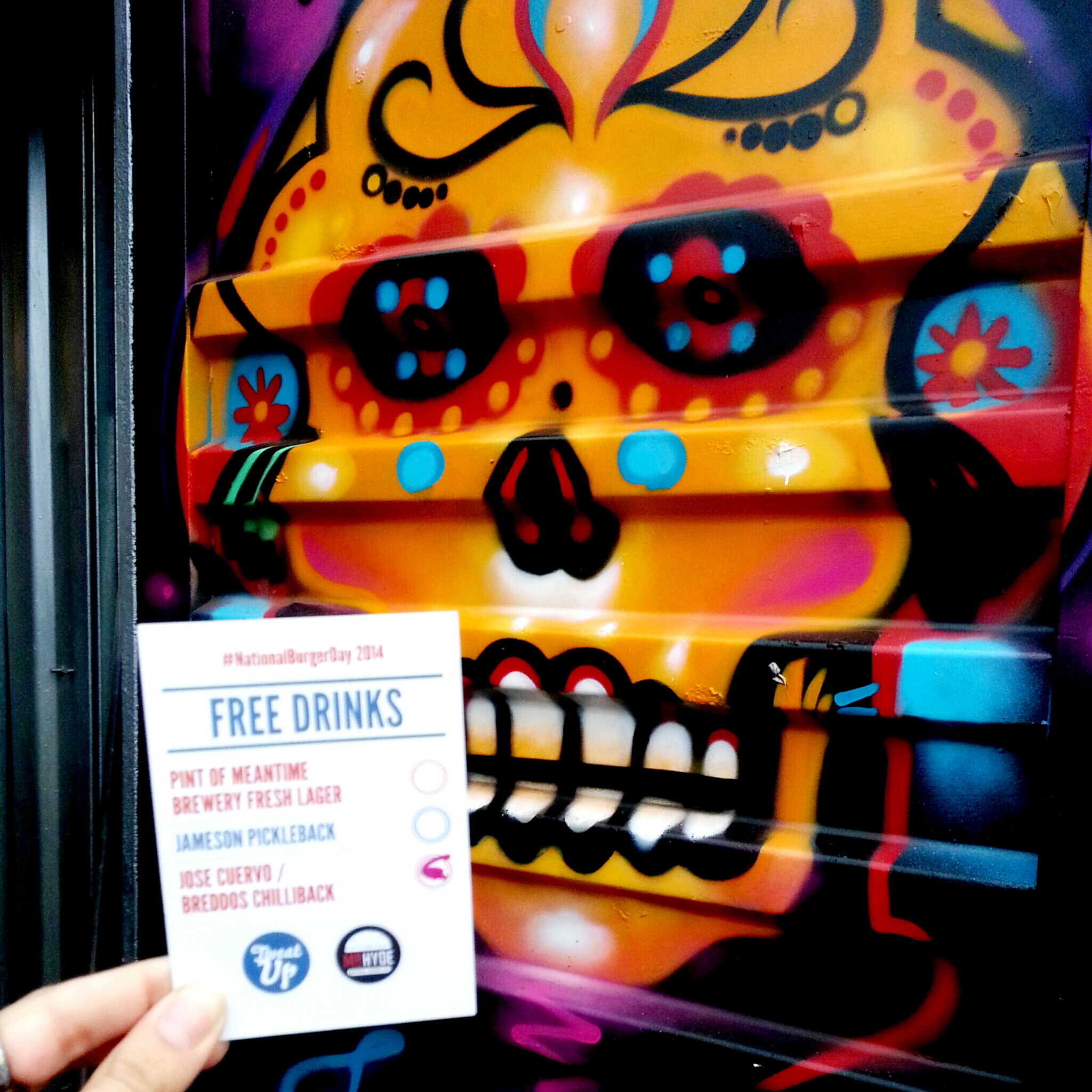 So on 27 August we ate light, headed south to Battersea, queued up and ate as many burgers as we could between us (spoiler: we split all the burgers to eat 5 between us – teamwork!) to make the most of the Mr Hyde National Burger Day event!