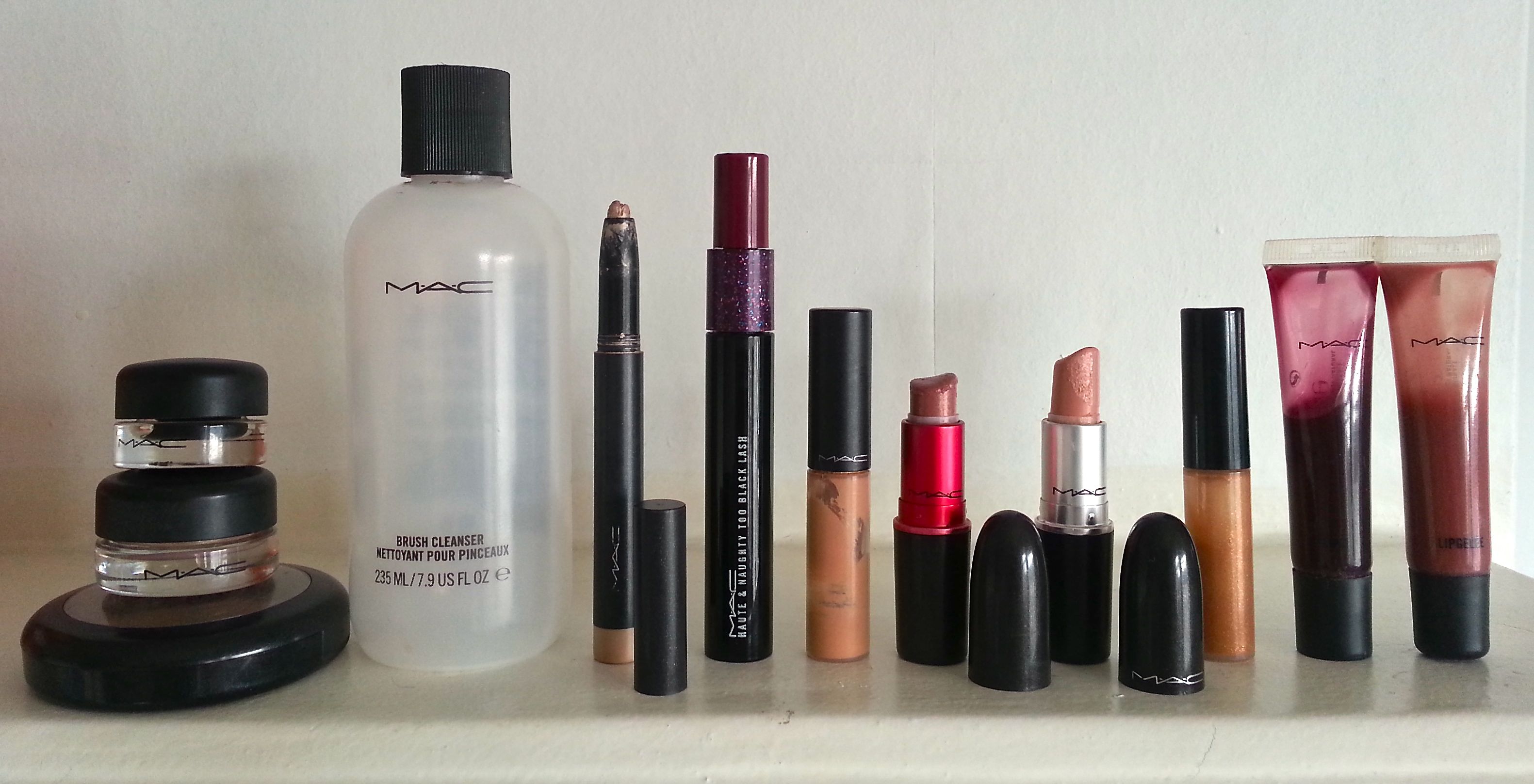 So, having my eye on Candy Yum Yum and Heroine, I raided my makeup bags for empties, expired products and products I hadn’t used in years. (Those lipsticks and glosses shown are nearly 10 years old, and I’ve had the Lip Gelées – which MAC doesn’t even make anymore! – since at least 2006.) Then I took 12 empty and old products and and traded them in for Candy Yum Yum and Heroine. Result!