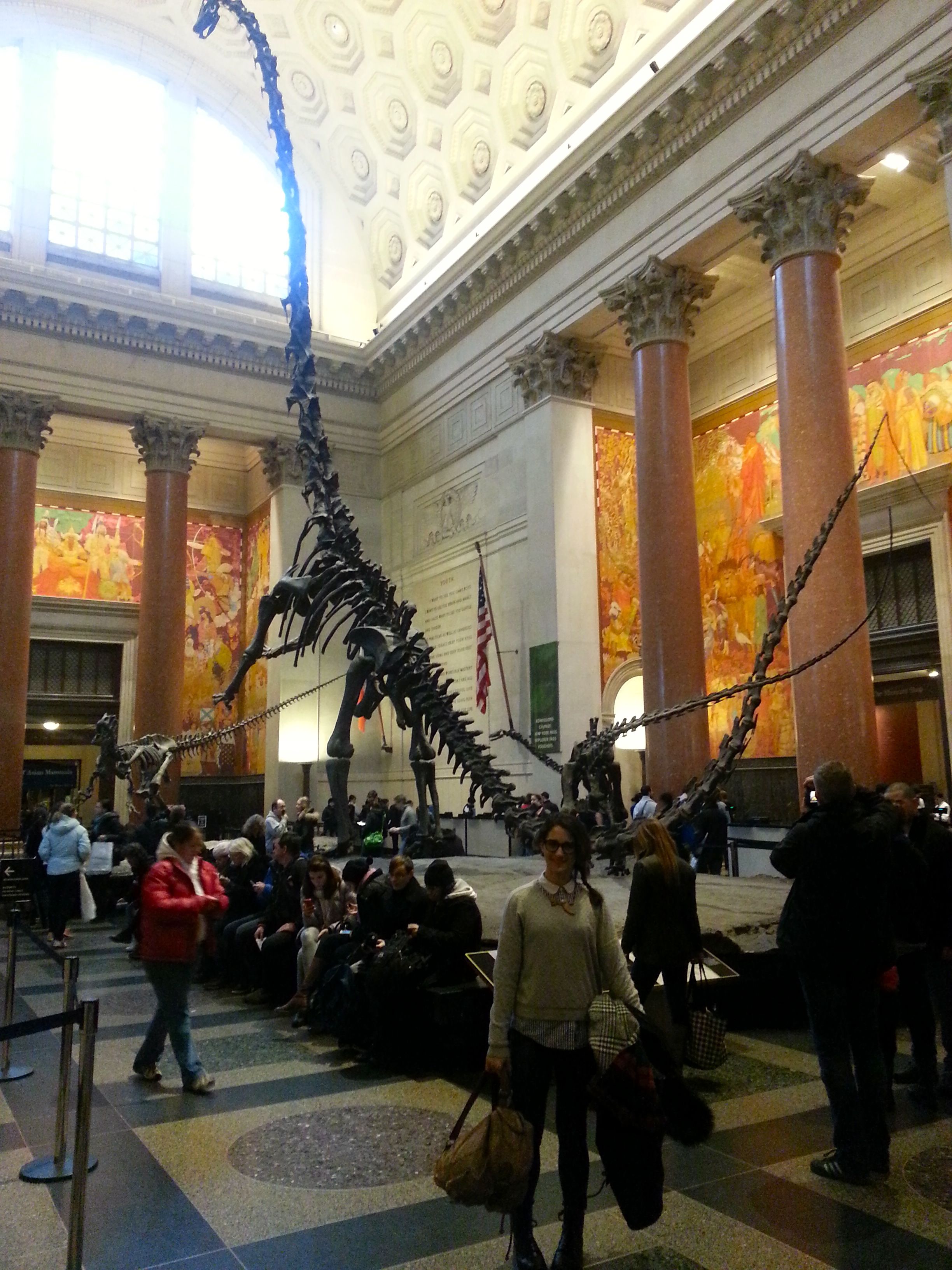 No way was I going to pass up a photo in the Theodore Roosevelt Rotunda at the AMNH with the Barosaurus skeleton shown on its hind legs! (And yes – that’s a skeleton made of casts of bones, not actual bones.) Just look how small we humans are in comparison – amazing!