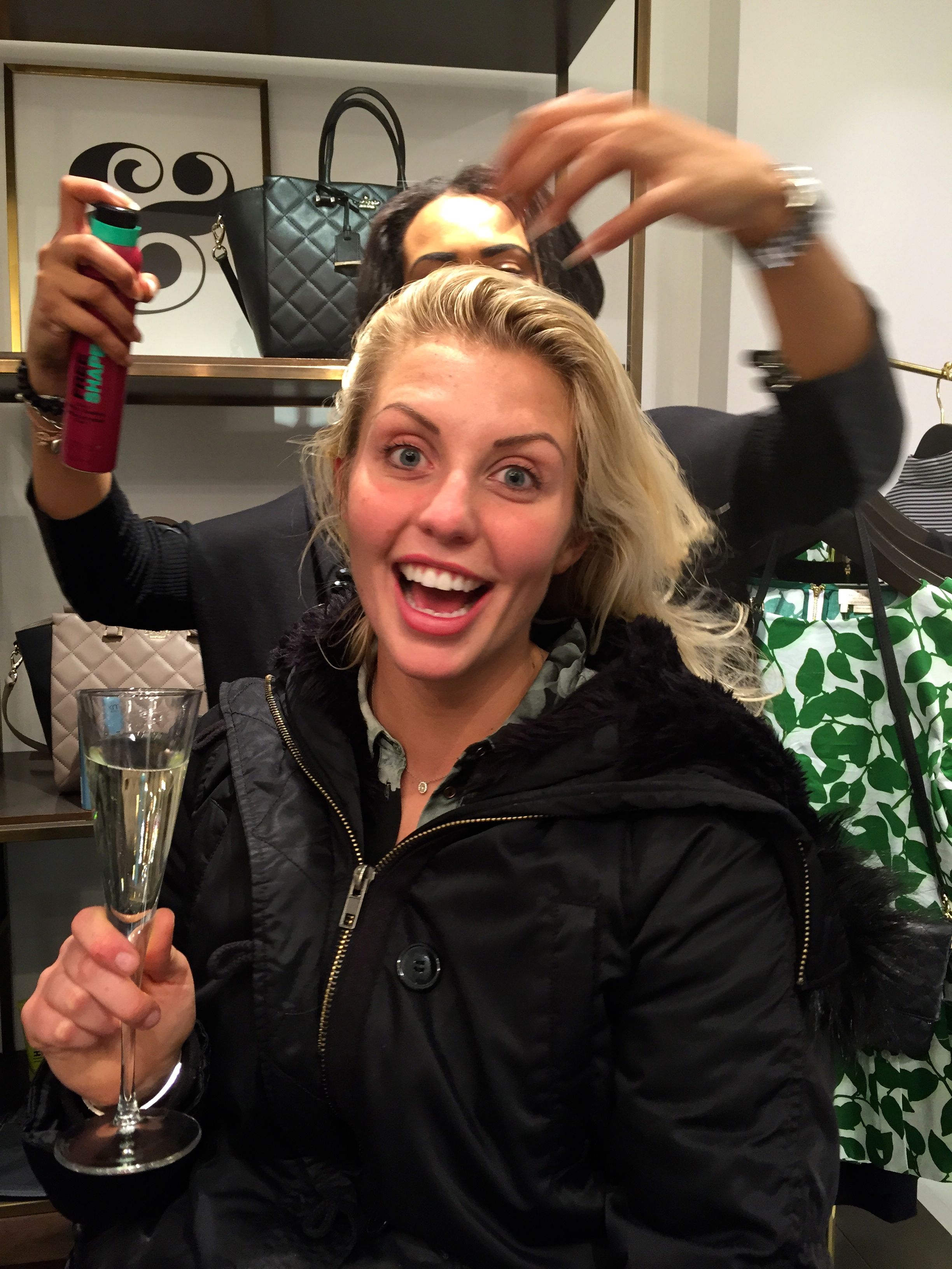 I popped by Kate Spade Covent Garden’s event after work to check out the spring 2015 collection with my colleague Iona. When we arrived we were treated to bubbly and pink lemonade (prosecco for me, please!) and a mini hairstyle makeover by Webster Whiteman. (I love how they added a bit more life into my curls after a day at my desk!) Perfect for getting us in to the ‘garden party’ spirit.