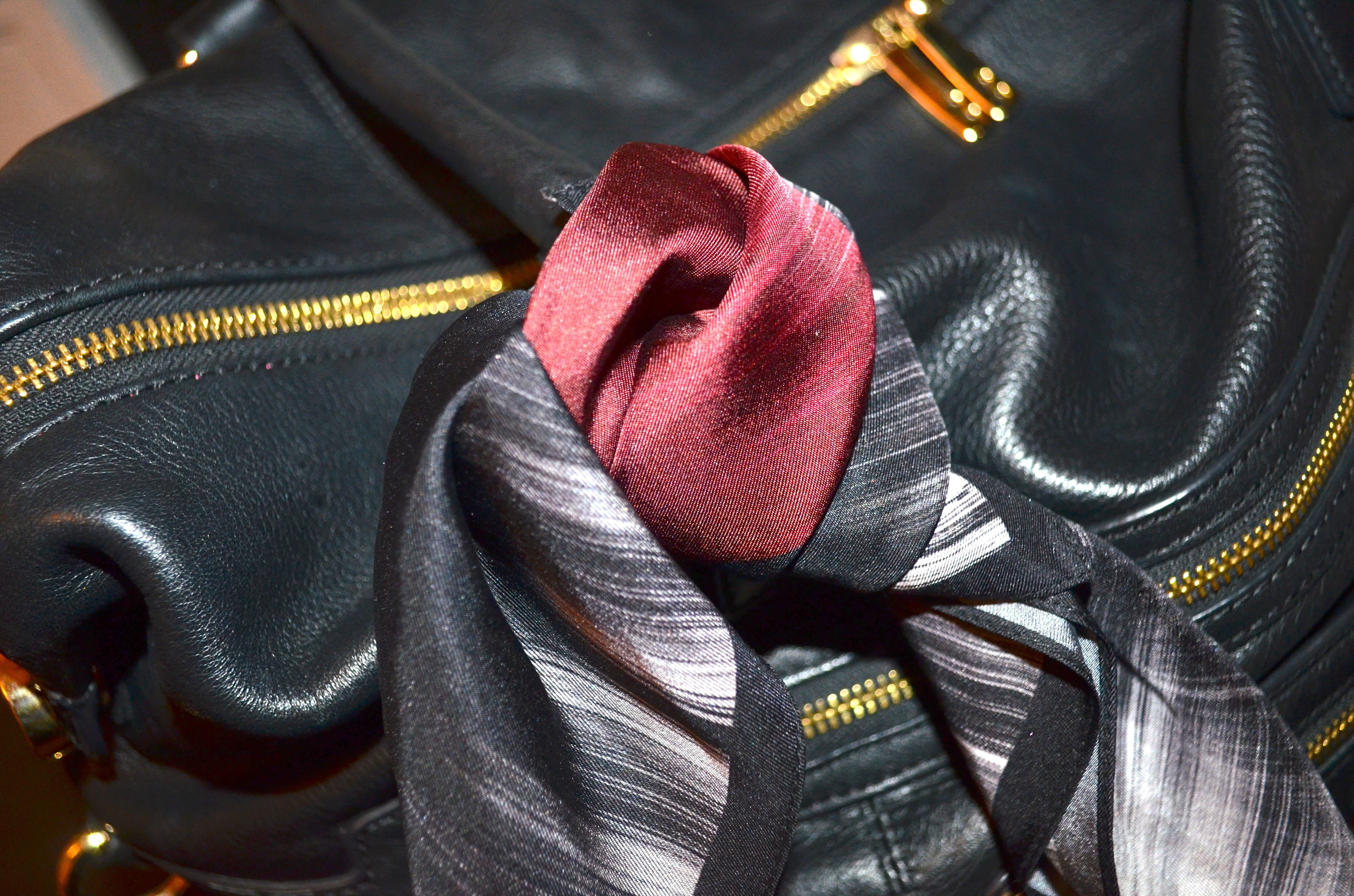 Neck scarf: I’ve done this in the past with larger scarves – tying like ties, folded in half as a triangle, a bow to the side, and even slipping both ends of the scarf through a ring (my dad’s old class ring is a favourite for the latter!) – but using a small scarf as a neck scarf is new to me. At first I felt a bit self conscious with it on, as though I wasn’t myself, but when I pulled on my leather jacket I realised that, actually, it took that day’s look to the next level in a positive way. Which is great.