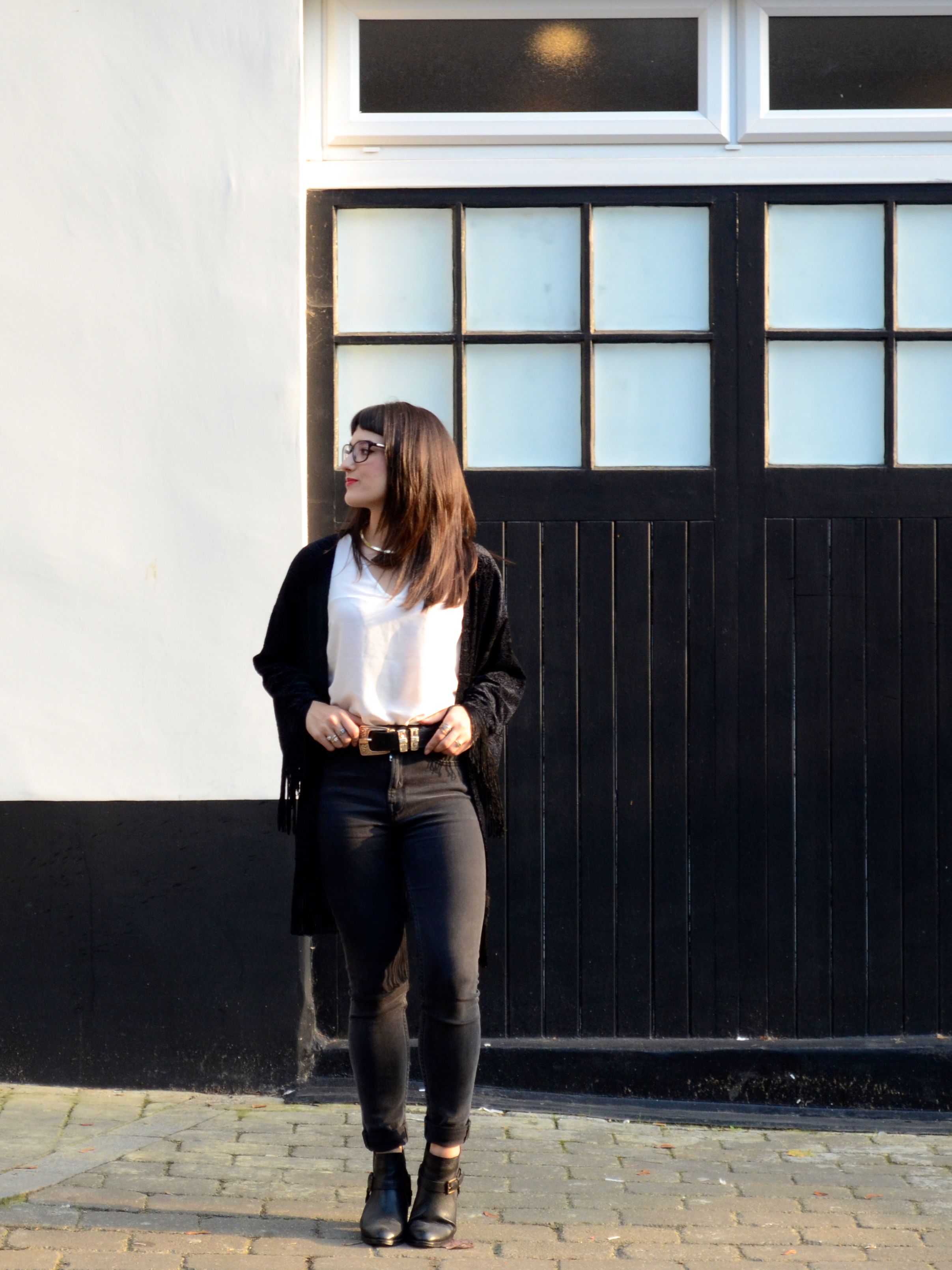 Call Me Katie - What I Wore - AW2015 Black Kimono and ASOS Torque Necklace with V neck - skinny jeans -ankle boots - black kimono - Weekend or Day to Night Look - 07