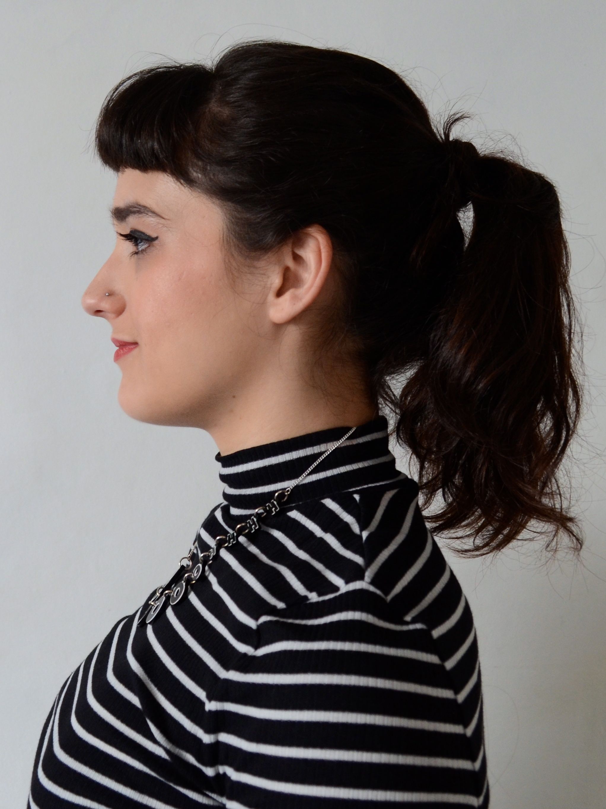 I like how sleek this looks, and just how simple it is to do. Wrapping the section of hair around the elastic band helped create a bit of distance between the ponytail and the back of my head, which a bit of definition to the style.